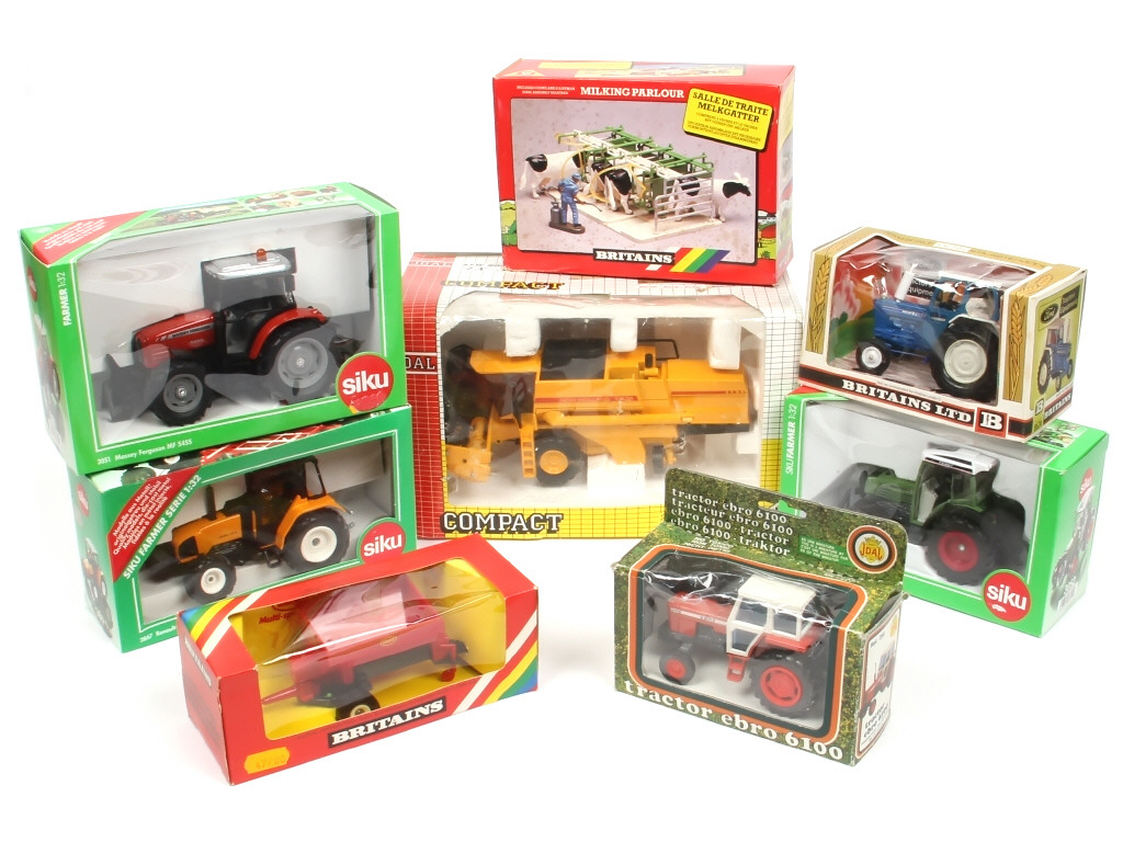miniatures reproduisant notamment les modèles : FEINDT, EBRO, MASSEY-FERGUSSON & RENAULT - les boites sont en état de 'b' à 'c' - on y retrouve les marques : SIKU, JOAL & BRITAINS