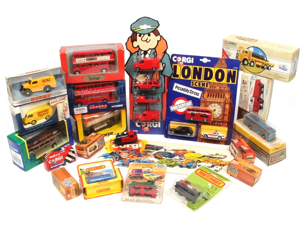on y retrouve notamment les marques : CORGI TOYS, MATCHBOX & DINKY TOYS - les boites sont en états de 'b' à 'c'
