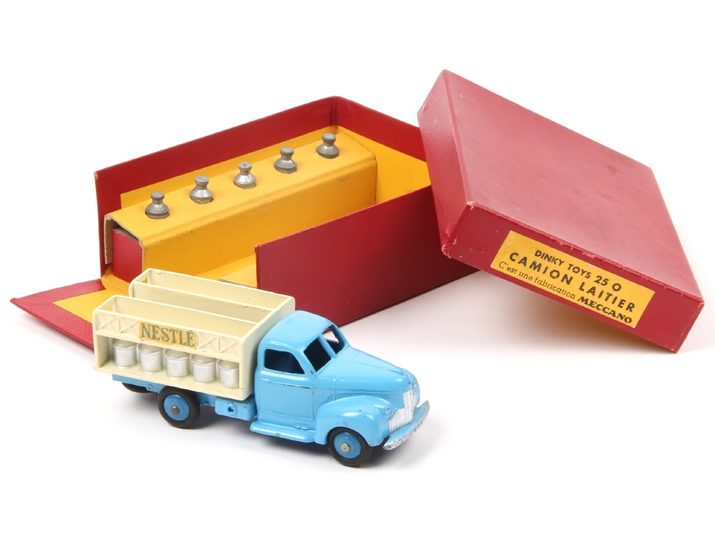 DINKY TOYS (FRANCE) 25o STUDEBAKER Laitier 'NESTLE' (avec cabine type 2 & roues à pneus 'M' première version) bleu ciel & blanc