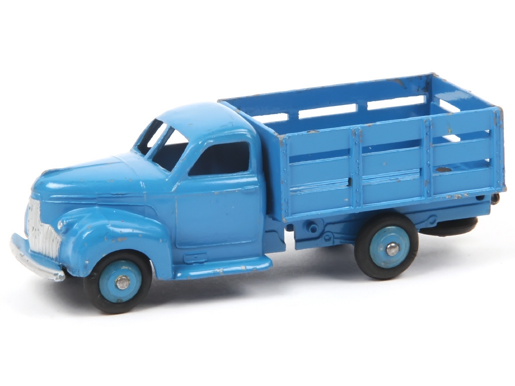 DINKY TOYS (FRANCE) 25L STUDEBAKER Tapissière (avec cabine type 2 & roues à pneus 'M') bleu vif, jantes identiques, bâche marron