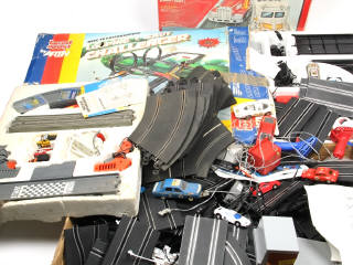 non testé - comprend notamment : transformateurs, poignées d'impulsion, voitures & différents rails - on y retrouve notamment les marques : JOUEF, TCR & SCALEXTRIC - les boites sont en états de 'b' à 'e' - avec manques, parties cassées & oxydées - ENSEMBLE A EXPLORER !