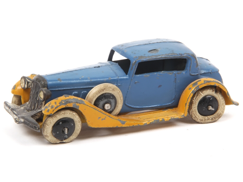 DINKY TOYS (FRANCE) 24D Berline de voyage (version d'avant-guerre avec roues à pneus 'DUNLOP') bleu, châssis jaune