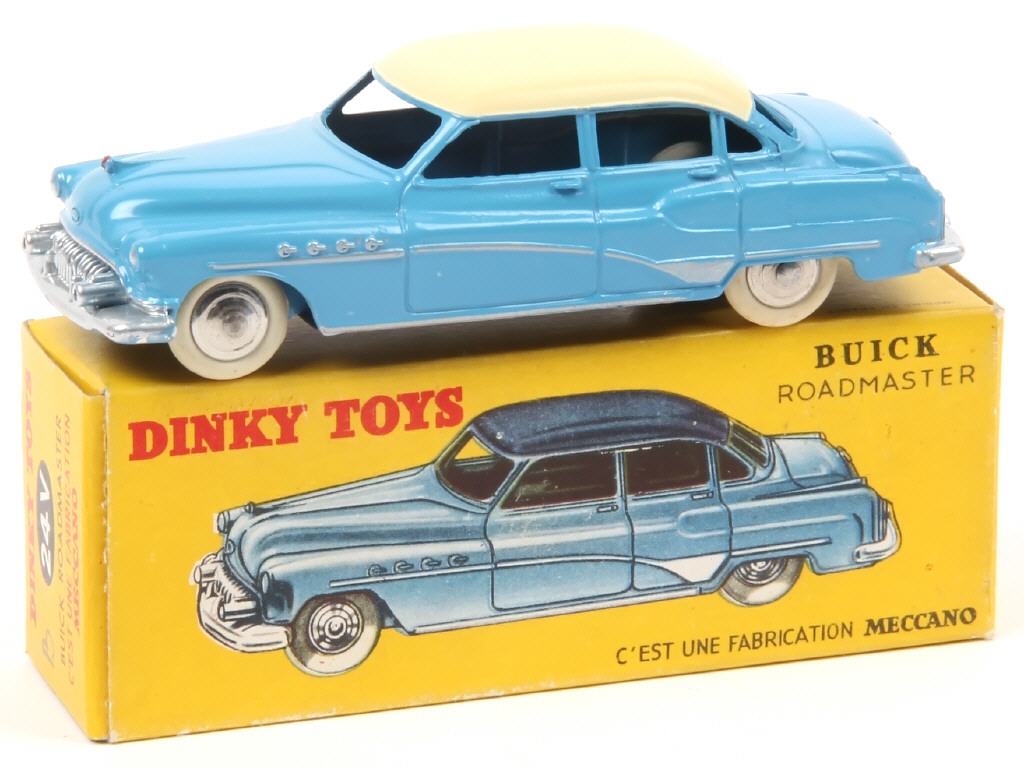 DINKY TOYS (FRANCE) 24V BUICK ROADMASTER (version avec intérieur de toit quadrillé & jantes chromées) bleu, toit crème