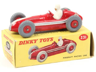 DINKY TOYS (GB) 231 MASERATI de course rouge, flèche blanche, jantes plastique rouge