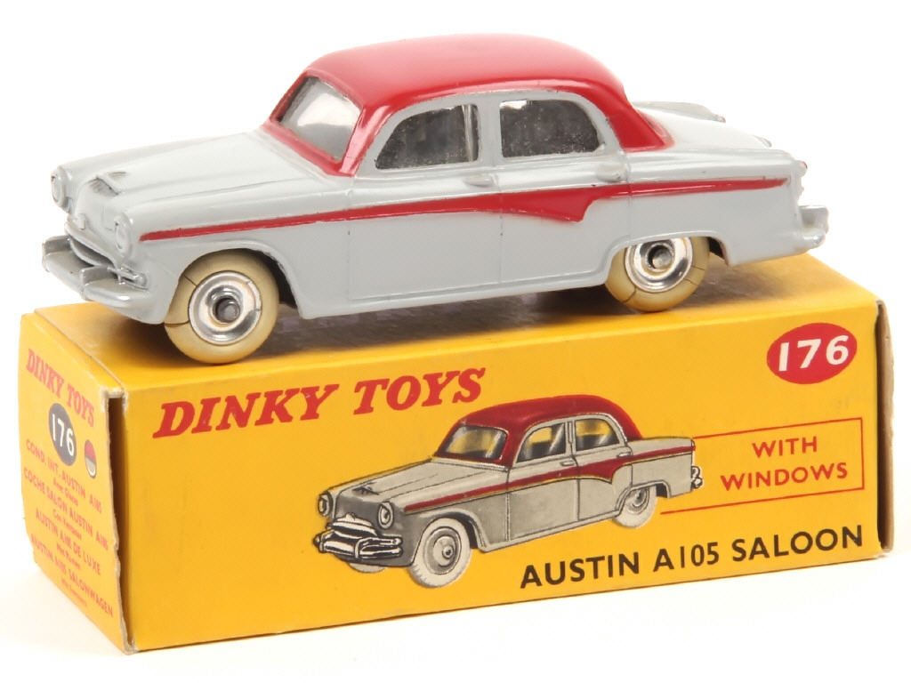 DINKY TOYS (GB) 176 AUSTIN A 105 Saloon gris, filets & toit rouges, jantes aluminium