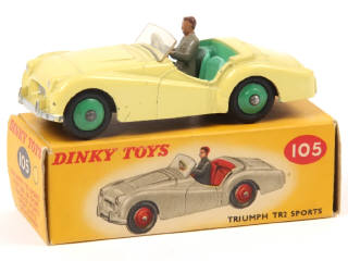 DINKY TOYS (GB) 105 TRIUMPH TR2 jaune citron, intérieur vert clair, jantes vertes