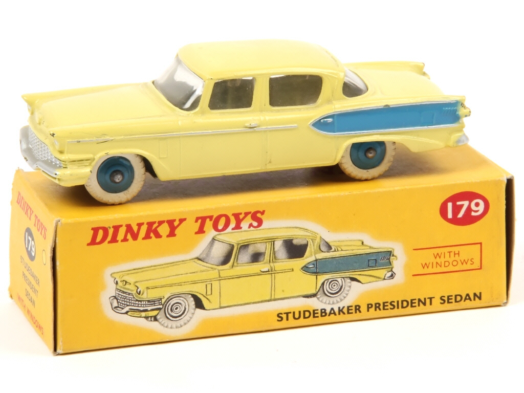 DINKY TOYS (GB) 179 STUDEBAKER PRESIDENT Sedan jaune citron, filets & jantes bleus