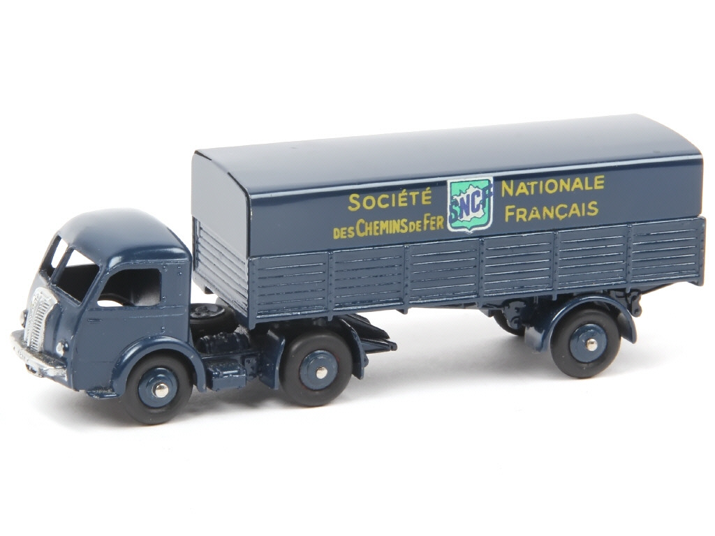 DINKY TOYS (FRANCE) 32AB PANHARD Semi-remorque 'S.N.C.F' (version avec intérieur de toit quadrillé) bleu foncé (fond de l'écusson uni)
