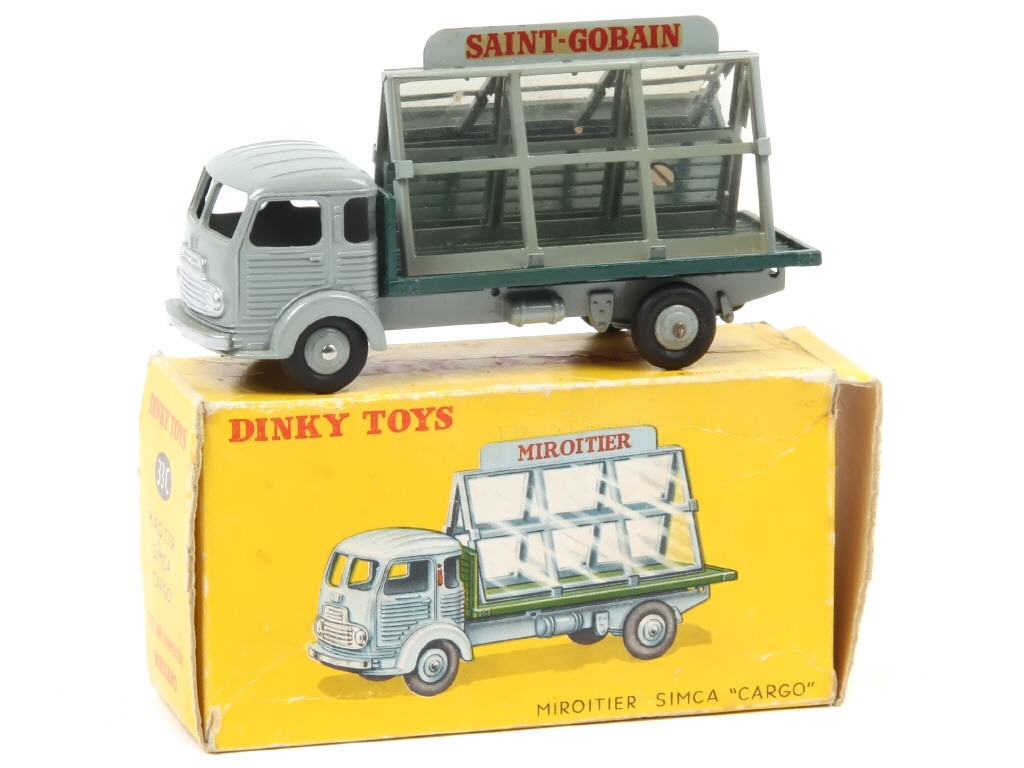 DINKY TOYS (FRANCE) 33C SIMCA CARGO Miroitier 'SAINT GOBAIN' (version avec jantes convexes) gris, plateau vert foncé & jantes grises