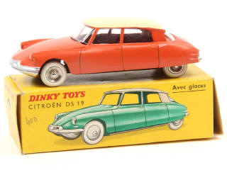 DINKY TOYS (FRANCE) 522 CITROËN DS 19 (version avec vitres & jantes concaves) orange, toit coquille d'oeuf
