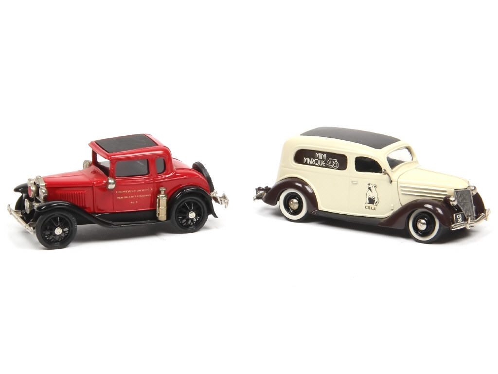 comprend les modèles : V8 1936 (un rétroviseur incomplet) & MODEL A 1930 - on y retrouve les marques : WESTERN MODELS & BROOKLIN