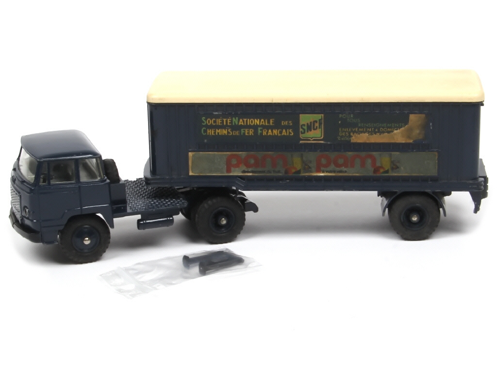 DINKY TOYS (FRANCE) 803 UNIC Semi-remorque 'S.N.C.F PAM PAM' bleu foncé, toit crème