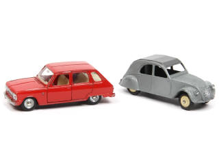 comprend : CITROEN 2 CV (une extrémité de plancher déformée - pneus craquelés) & RENAULT 6 (manque autocollants de plaques - capot-moteur collé)