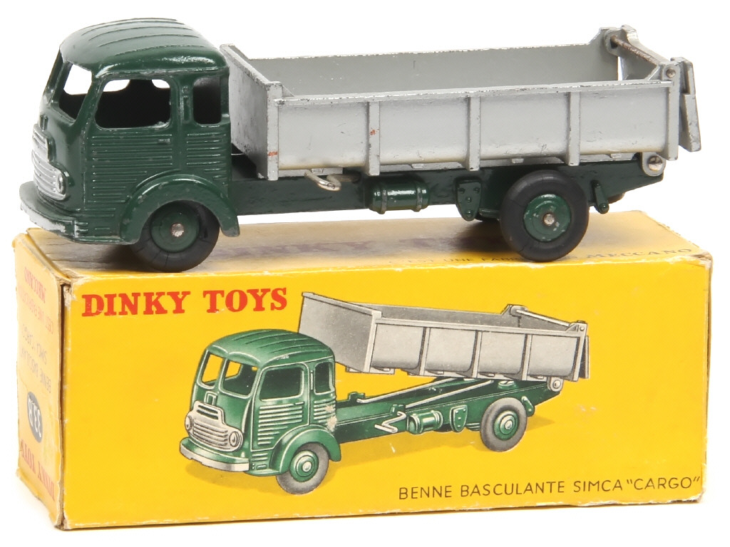 DINKY TOYS (FRANCE) 33B SIMCA CARGO Benne basculante vert foncé, benne gris métal (intérieur strié)