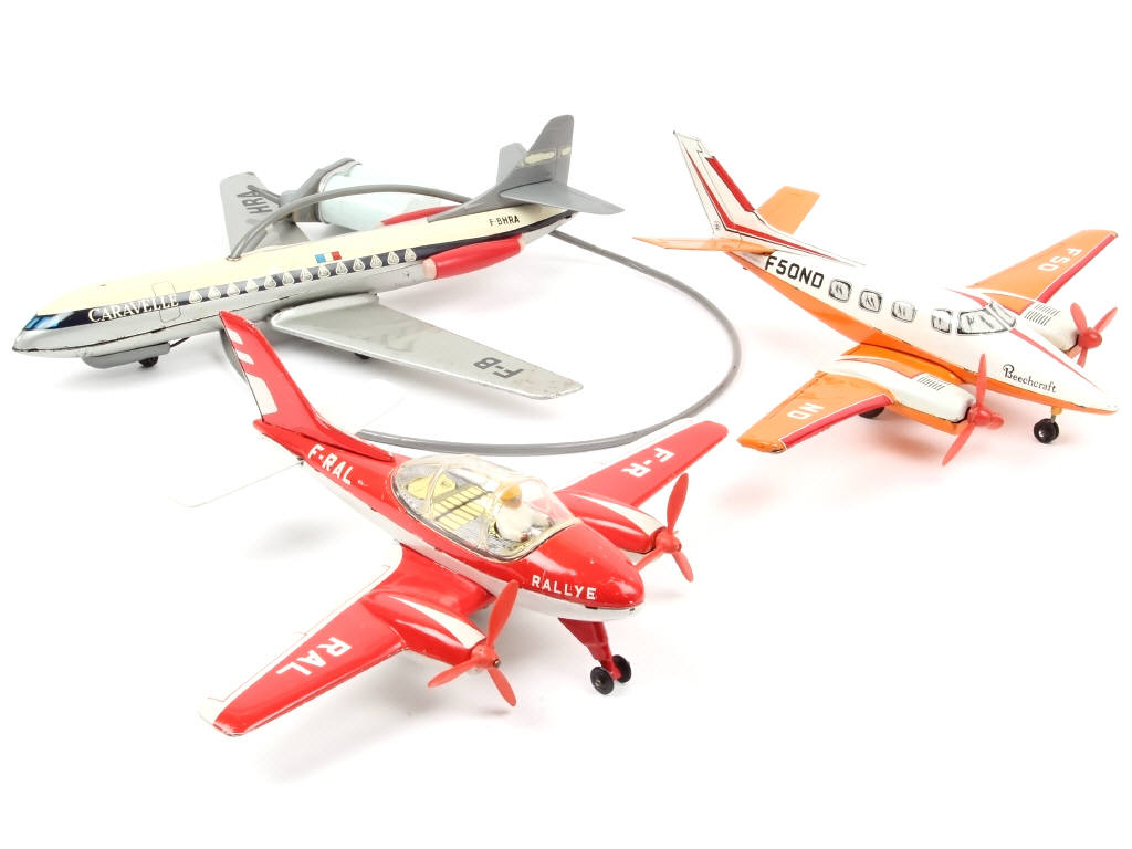 DIVERS (FRANCE) Ensemble de 3 avions mécaniques en tôle
