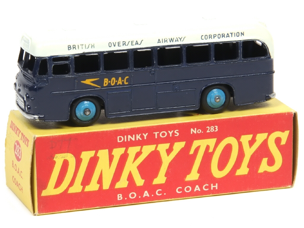 DINKY TOYS (GB) 283 Bus 'B.O.A.C' bleu foncé, toit blanc & jantes bleu vif