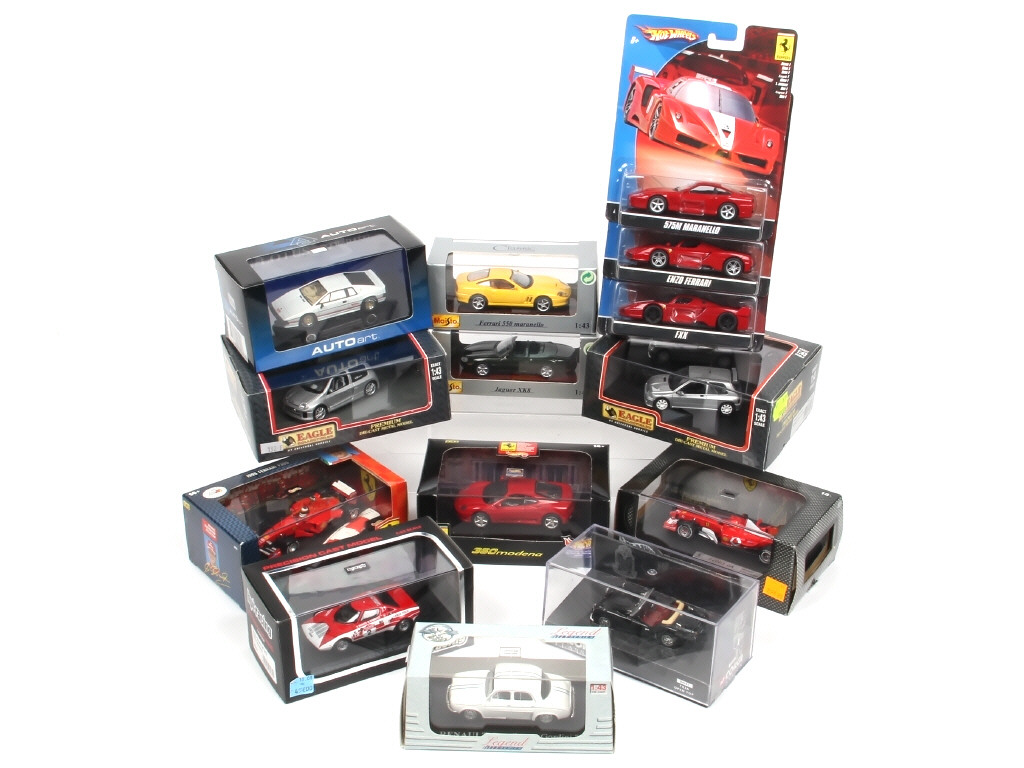 miniatures reproduisant les modèles : FERRARI, JAGUAR, LOTUS, TRIUMPH, RENAULT & LANCIA - on y retrouve notamment les marques : EAGLE COLLECTIBLES, AUTOART, MAISTO, UNIVERSAL HOBBIES & MATTEL