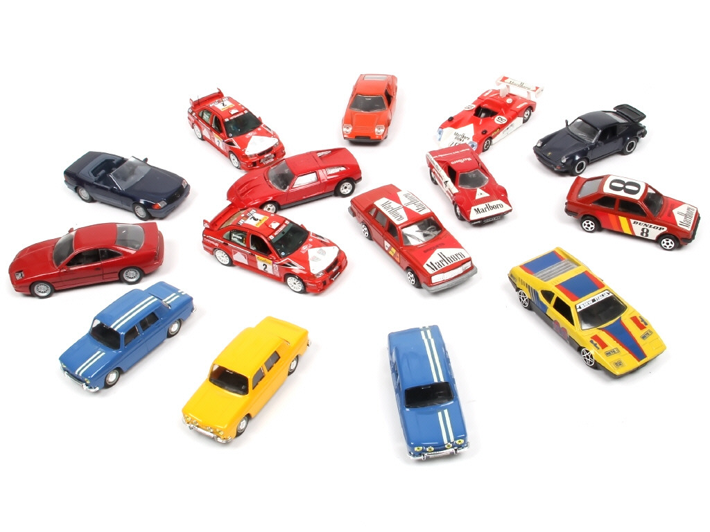 miniatures reproduisant notamment les modèles : RENAULT, BMW, LANCIA, VOLVO, MITSUBISHI & PORSCHE - on y retrouve notamment les marques : NOREV, POLISTIL, SCHABAK, NZG & TOMICA DANDY - petits manques & parties cassées sur certains exemplaires