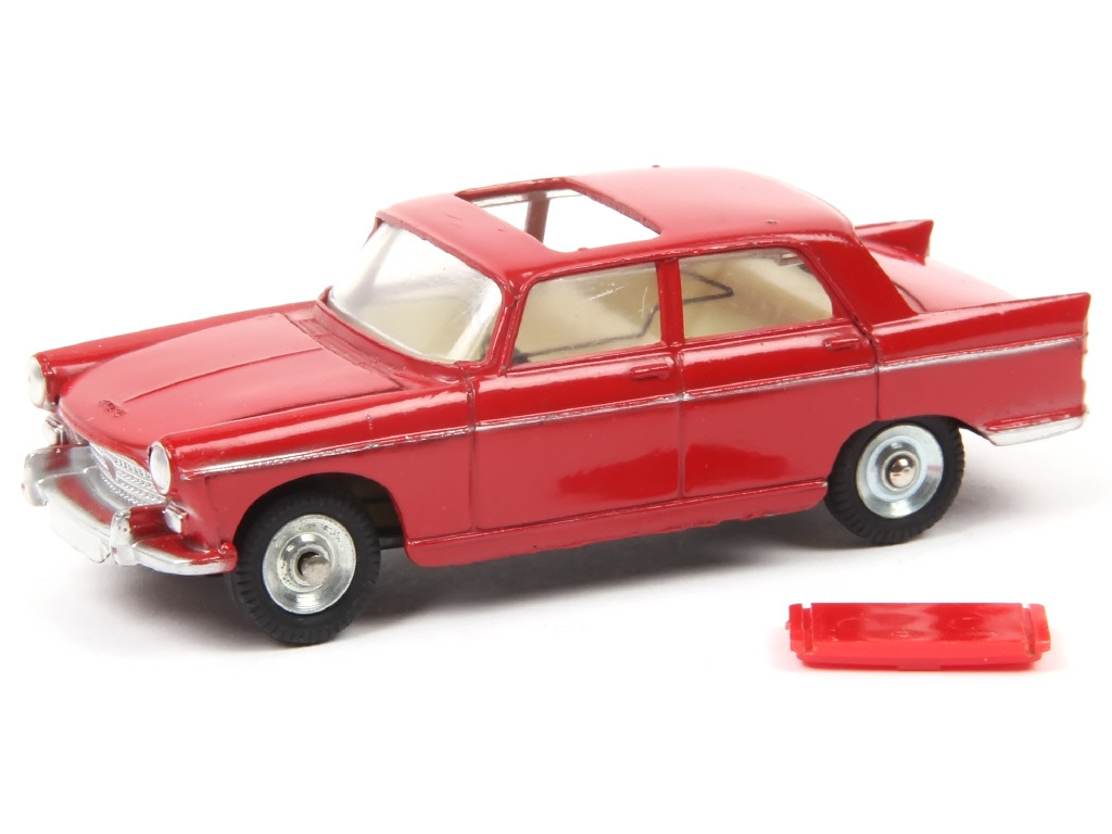 DINKY TOYS (FRANCE) 536 PEUGEOT 404 avec remorque monoroue (skis manquants) rouge