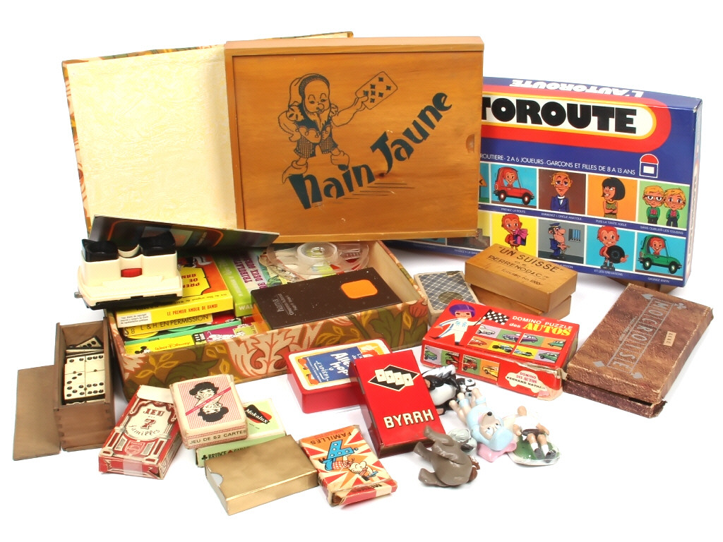 comprend notamment : puzzle, dominos, nain jaune, jeux de 7 familles & L'AUTOROUTE...