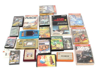 non testé - comprend notamment : MISSILE INVADER, MARIO BROS, DONKEY TONK & plusieurs K7 de jeux divers - on y retrouve notamment les marques : NITENDO & PHILIPS - un exemplaire encrassé - les boites sont en état 'b'
