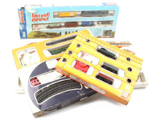 non testés - comprend : OCCITAN, EDF TRAFIC & de marchandises - modèles encrassés avec quelques éléments & accessoires cassés & d'autres manquants - les boîtes sont en états 'b' à 'd' - possibilité de modèles non conformes aux coffrets - on y joint un coffret 'TGV' de la marque LIMA (boîte état 'e')