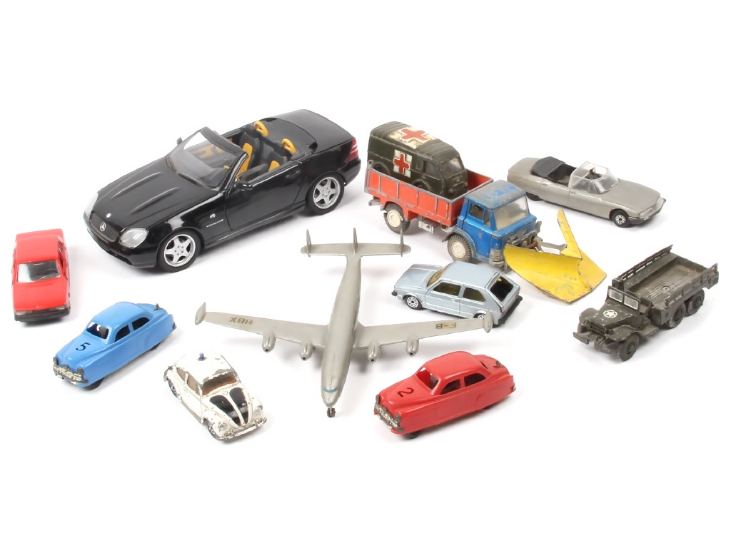 miniatures reproduisant notamment les modèles : DODGE, CITROËN, RENAULT & VOLKSWAGEN - on y retrouve notamment les marques : DINKY TOYS, NOREV, FRANCE JOUETS & CORGI TOYS - avec manques, parties cassées & oxydées