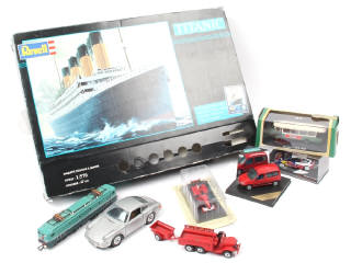 on y retrouve notamment les marques : JOUEF (non testé), SOLIDO, MARTOYS & VITESSE - on y joint une maquette à monter du TITANIC de la marque REVELL - quelques manques & parties cassées sur certains exemplaires