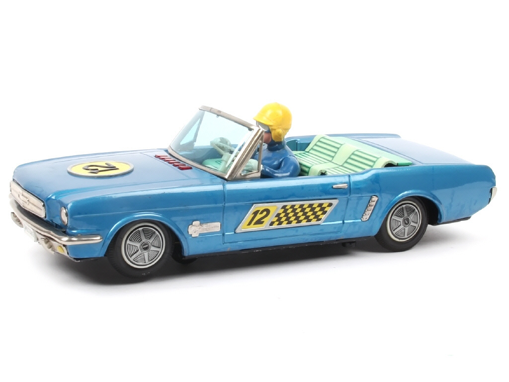 YONEZAWA TOYS (JAPON) FORD MUSTANG Cabriolet de compétition en tôle bleu métal