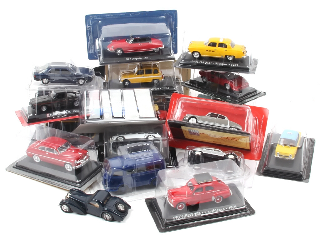 modèles vendus en kiosque - miniatures reproduisant notamment les modèles : BUGATTI (sans boîte), SIMCA, CITROËN & VOLKSWAGEN - on y retrouve notamment la marque : EDITIONS ATLAS - possibilité de petits accessoires manquants - les boîtes en états de 'a' à 'c'