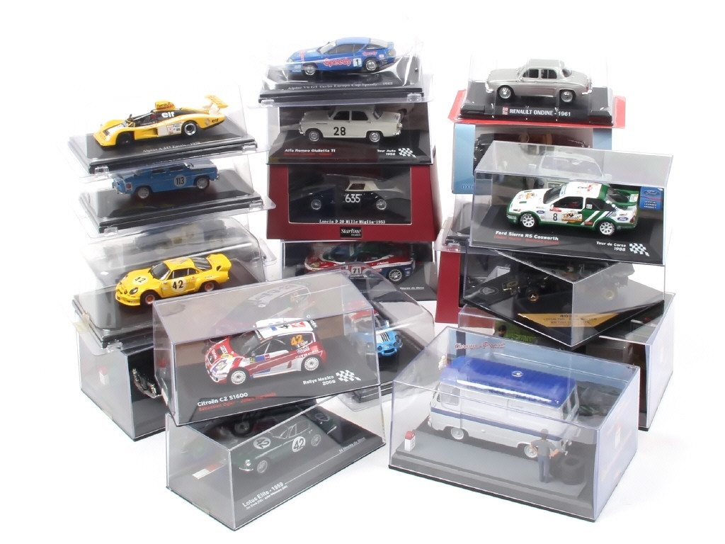 miniatures reproduisant notamment les modèles : PEUGEOT, FORD, CITROËN & ALPINE (un exemplaire avec rétroviseur cassé & manquant) - on y retrouve notamment les marques : STARLINE, ALTAYA & QUARTZO - possibilité de petits accessoires manquants - les boîtes en états de 'a' à 'c'