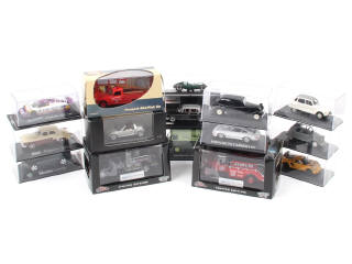 miniatures reproduisant notamment les modèles : MERCEDES, SMART, PEUGEOT, JAGUAR & SAVIEM - on y retrouve notamment les marques : UNIQUE REPLICAS, VITESSE & EDITIONS ATLAS (suremballage déchiré) - possibilité de petits accessoires manquants - les boîtes sont en état de 'a' à 'b'