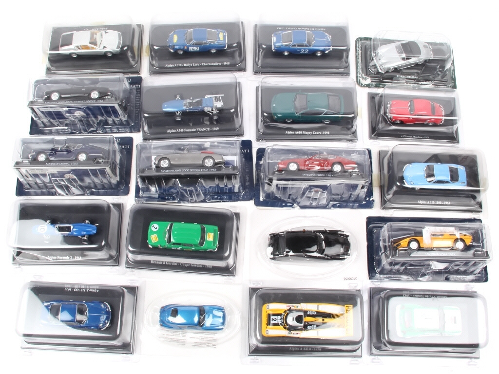 modèles vendus en kiosque - miniatures reproduisant notamment les modèles : ALPINE, RENAULT, MASERATI & PORSCHE (manque fixation de socle de boîte) - on y retrouve notamment la marque : EDITIONS HACHETTE - possibilité de petits accessoires manquants - les boîtes sont en états de 'a' à 'd'
