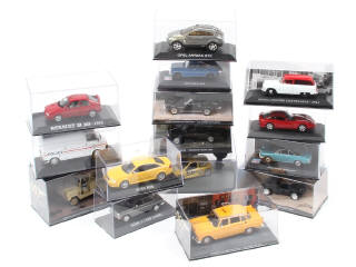 miniatures reproduisant notamment les modèles : RENAULT, SIMCA, TVR & AUDI - possibilité de petits accessoires manquants - les boîtes sont en état de 'a' à 'b'