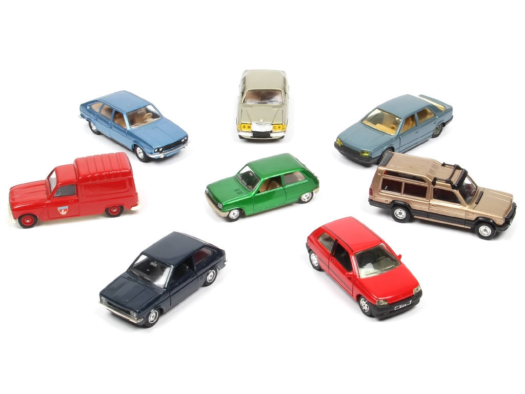 miniatures reproduisant les modèles : RENAULT, MERCEDES, TALBOT & FORD
