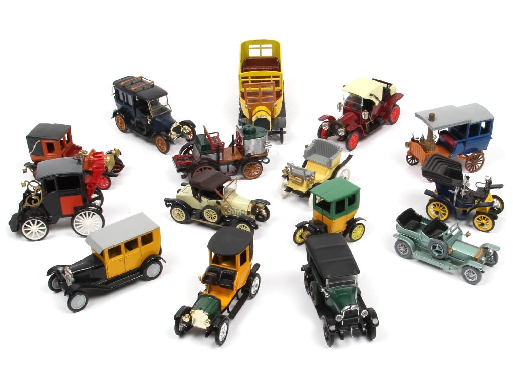 miniatures reproduisant notamment les modèles : FIAT, SCOTT, DEDION BOUTON, DECAUVILLE, HAUTIER, CITROEN, BRAZIER & ROLLS ROYCE - on y retrouve notamment les marques : RIO, MATCHBOX, R.W MODEL, RAMI & DUGU - avec petits manques & parties cassées