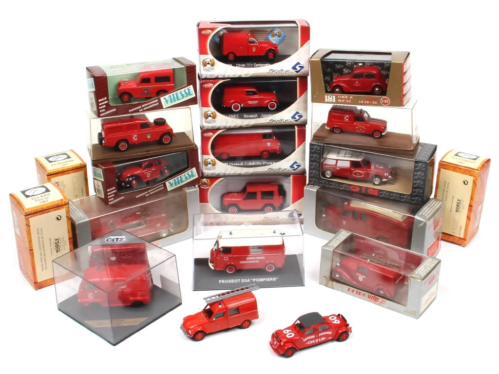 miniatures reproduisant notamment les modèles : LAND ROVER, CITROEN, CADILLAC, SAURER, PEUGEOT & VOLKSWAGEN - on y retrouve notamment les marques : VITESSE, BRUMM, SOLIDO, RIO & NOREV - possibilités de manques, parties cassées & petites transformations - les boites sont en état de 'b' & 'd'