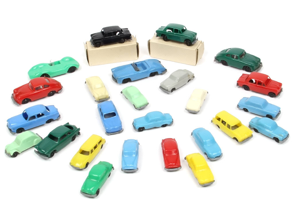 petites échélles - fabrication en plastique - miniatures reproduisant notamment les modèles : CITROEN, PORSCHE, RENAULT, ALFA ROMEO & MASERATI - avec manques, parties cassées & oxydées sur certains modèles