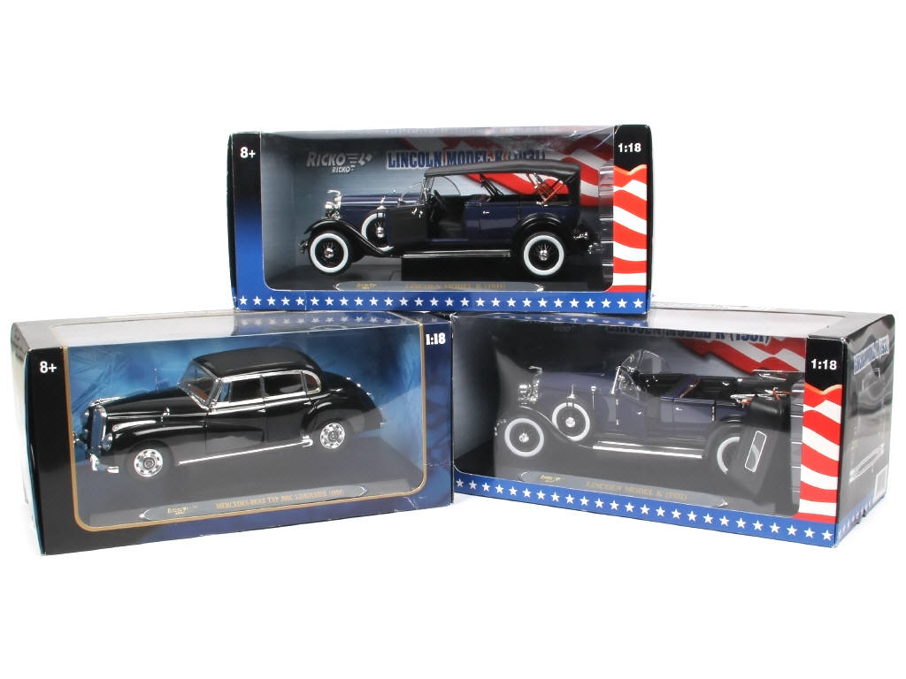 échelle 1/18ème - comprend : MERCEDES-BENZ type 300C limousine 1955 & LINCOLN MODEL K 1931 - quelques accrocs sur les boites