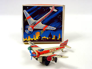 envergure 15 cm - moteur à ressort (fonctionne) - avec système de pierres à briquet pour l'éclairage des feux d'ailes (fonctionne) - manque vraisemblablement la roulette de queue