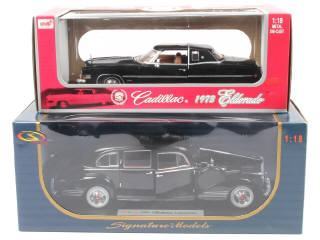 échelle 1/18ème - comprend les modèles : PACKARD 1941 & CADILLAC ELDORADO 1973 - on y retrouve les marques : ANSON & SIGNATURE MODELS - quelques petits accrocs sur les boîtes