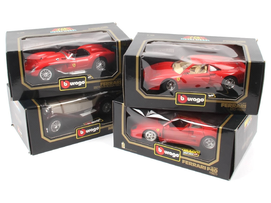 échelle 1/18ème - comprend les modèles : FERRARI 250 TESTA ROSSA, GTO, F40 & MERCEDES SSK - blisters de boîtes plus ou moins décollés