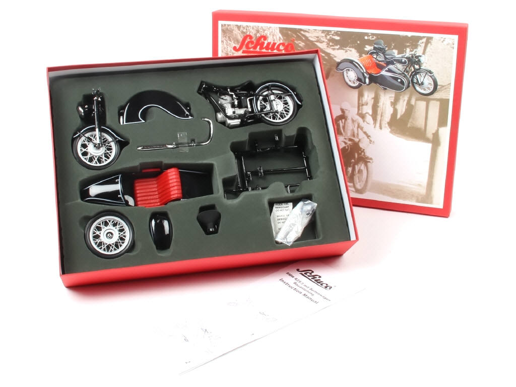 production récente - dimensions : 40 x 30 cm - véhicule à construire - contient : une moto BMW R25 avec side-car, différents éléments, accessoires & notice - avec mousse de protection & suremballage cartonné