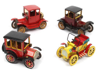 longueur moyenne : 15 cm - 3 moteurs à ressort & à clef fonctionnent & un autre à revoir - on y retrouve notamment les marques : OLDTIMER, SCHUCO & BINDSCHEDLER IMPRIMETO - avec manques & parties cassées - traces d'oxydation