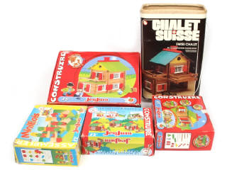 JEUJURA (FRANCE) Ensemble de 5 coffrets de constructions en bois & plastique