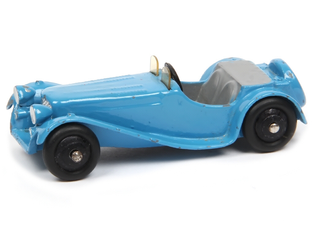DINKY TOYS (GB) 38F JAGUAR SS100 Roadster bleu ciel, intérieur gris, jantes noires