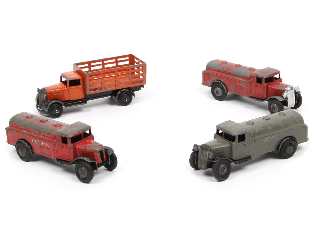 comprend notamment : maraîcher, citerne 'POOL' (version châssis 2ème type - calandre ternie) & 'PETROL' (2ème type) - avec manques, parties cassées, oxydées & non conformes selon les modèles