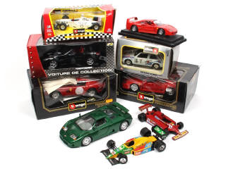 différentes échelles - miniatures reproduisant notamment les modèles : MERCEDES, FERRARI, LANCIA & BUGATTI - quelques petits manques & parties cassées sur certains modèles - 5 modèles en boite en états de 'b' à 'c'