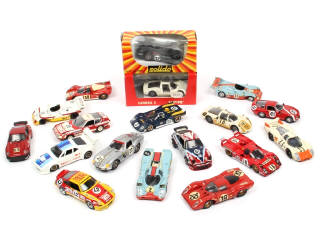 miniatures reproduisant notamment les modèles : GULF, BMW, FERRARI, ASTON MARTIN & PORSCHE - on y retrouve notamment les marques : SOLIDO & VEREM - avec manques & parties cassées