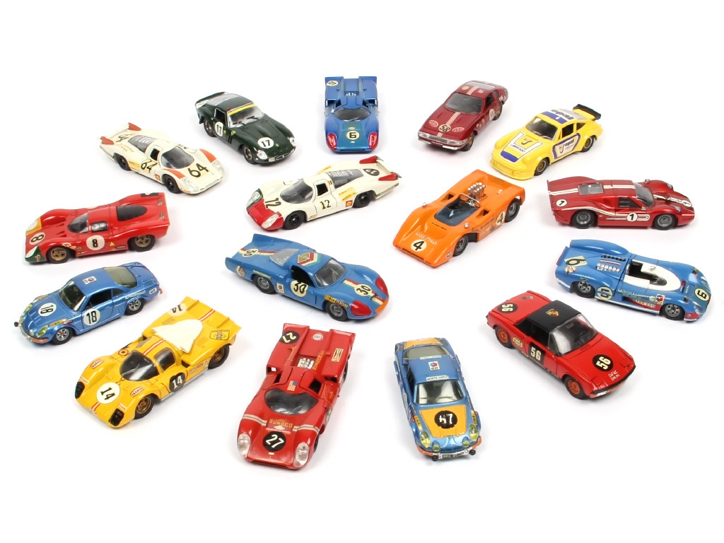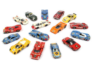 miniatures reproduisant notamment les modèles : ALPINE, LOLA, FERRARI, PORSCHE & FORD - avec manques, parties cassées & parties repeintes sur certains modèles